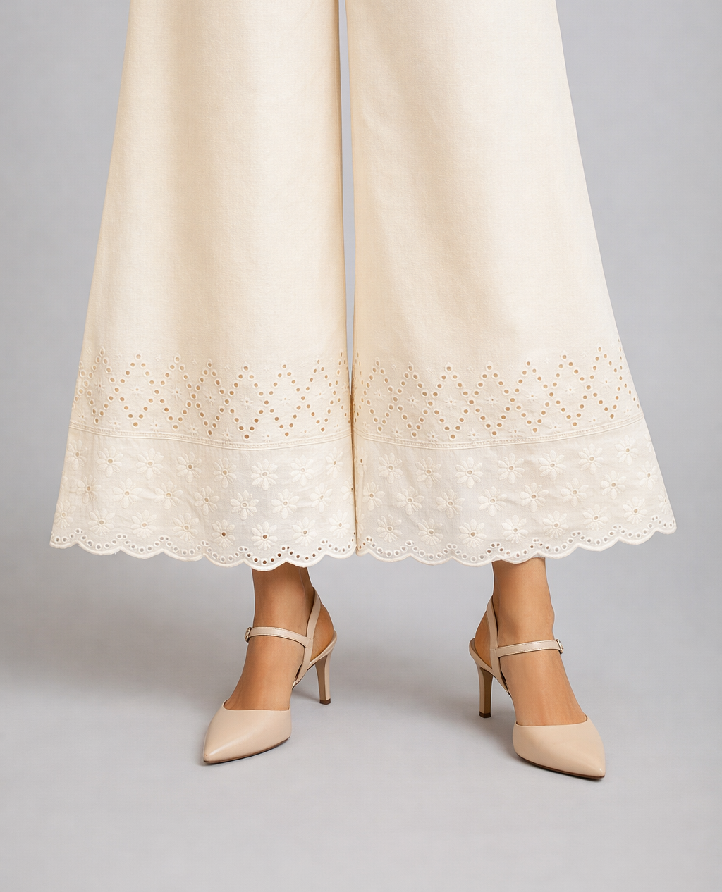 Elevate your wardrobe with our exquisite Chikankari Cotton Palazzo in elegant creme. This timeless piece showcases intricate hand-embroidered chikankari detailing that adds refined sophistication to any occasion. Crafted from breathable cotton, it offers both comfort and style, making it an essential addition to your ethnic collection. Perfect for celebrations, gatherings, or everyday elegance, this palazzo combines traditional craftsmanship with contemporary silhouettes for a polished, graceful appearance.